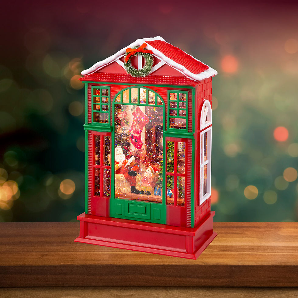 Casita de agua musical, luz LED. Largo 9cm x Ancho 15.3cm x Alto 28.8cm.